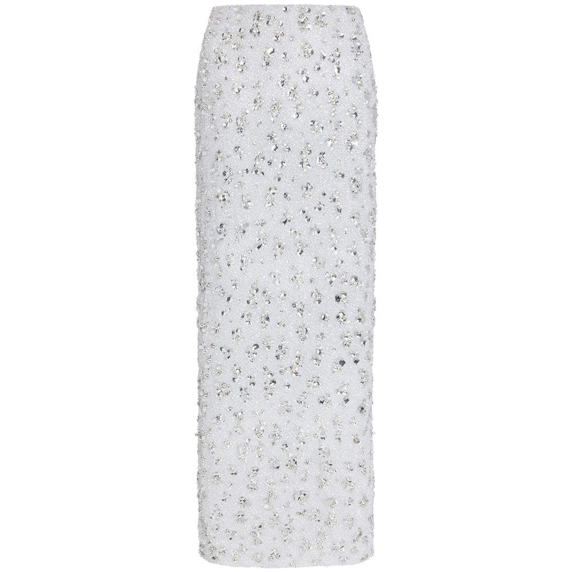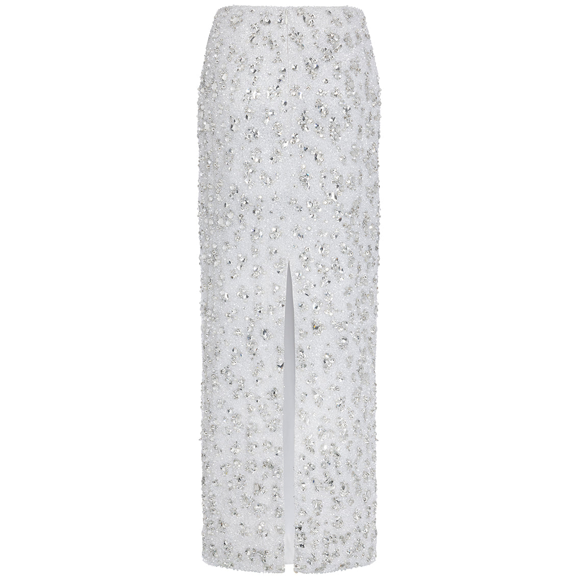 The Cedar Skirt is the ultimate statement evening piece. Encrusted in moonbeam sequins and crystals, a perfect piece for the modern bride or evening occasion. The modern column silhouette with back split detail ensures the perfect fit. Wear back with the Cedar top to create the perfect statement occasion look.