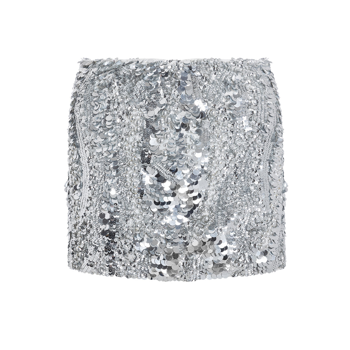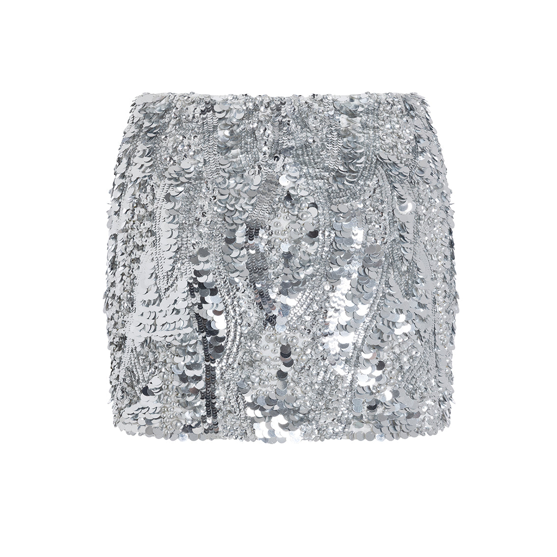 Our mirrorball Lottie skirt is hand embellished in textured paillettes and metallic sequins, designed to make a statement. Perfect for parties and special occasions, this show-stopping piece shimmers with intricate attention to detail. Wear it solo or as a co-ord for effortless glamour. A must-have for those who love to shine!