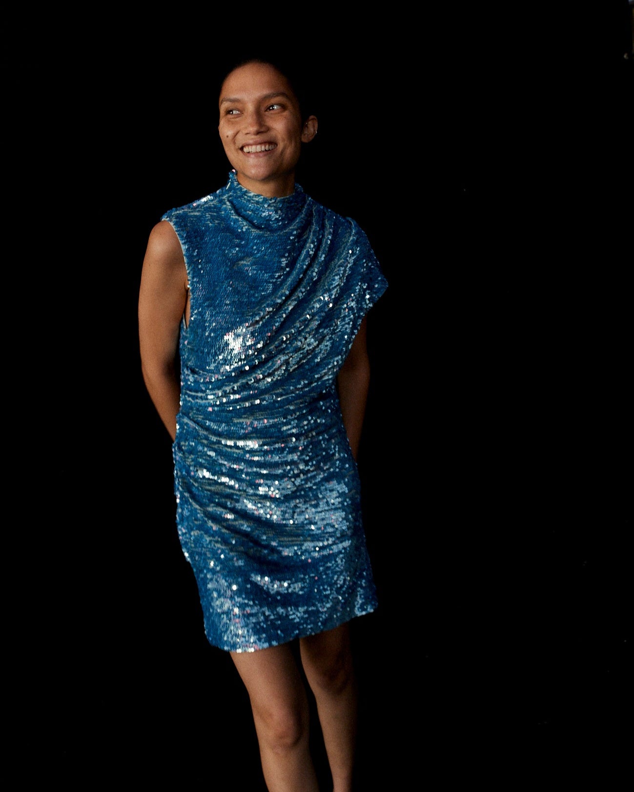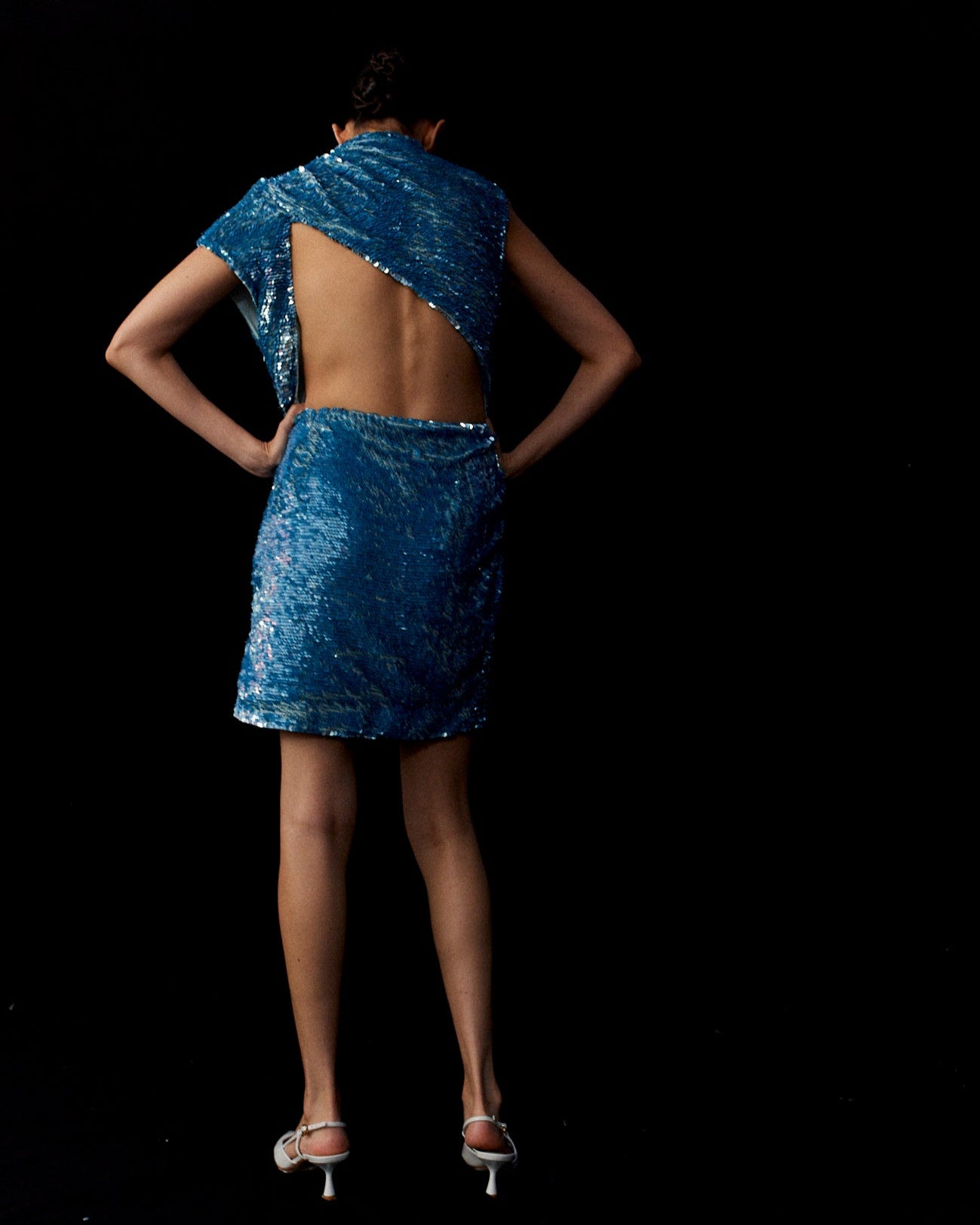 Make a bold statement in the Reina Dress. A modern, sensual design with soft draped bodice detail. Featuring a flattering open back for a sexy yet sophisticated look, this dress is perfect for any occasion.
